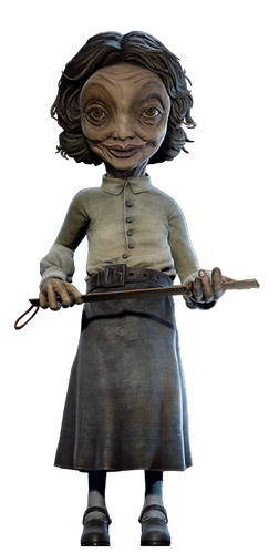 The player interacts with the game world through two hands. Her first appearance was in the Season One episode Contemporary American Poultry. She had undergone throat surgery at one point and was unable to speak for a time.